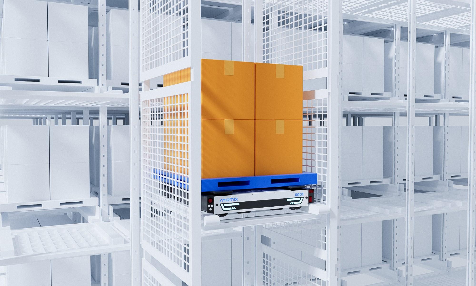 מחסן משטחים חכם בשיטת מנהרות וקרוניות. ATOMIX החברה המובילה בעולם בתחום   AI וכן מחסנים אוטומטיים למשטחים בשיטת שאטל (קרוניות הנעות לשישה כיוונים: קדימה, אחורה, ימינה שמאלה, למעלה ולמטה) שיטה זאת מגדילה באופן משמעותי את נפח האחסון במבנה נתון.
